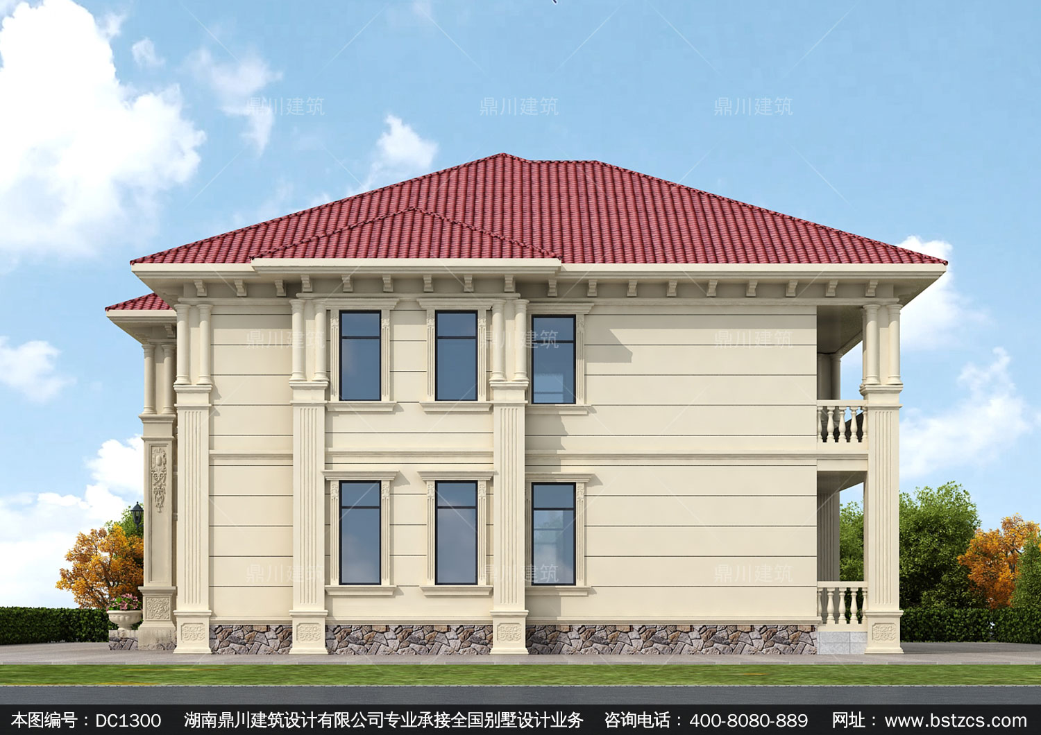 新農村歐式二層帶陽臺別墅圖紙效果圖_鄉村自建房設計,鼎川建筑