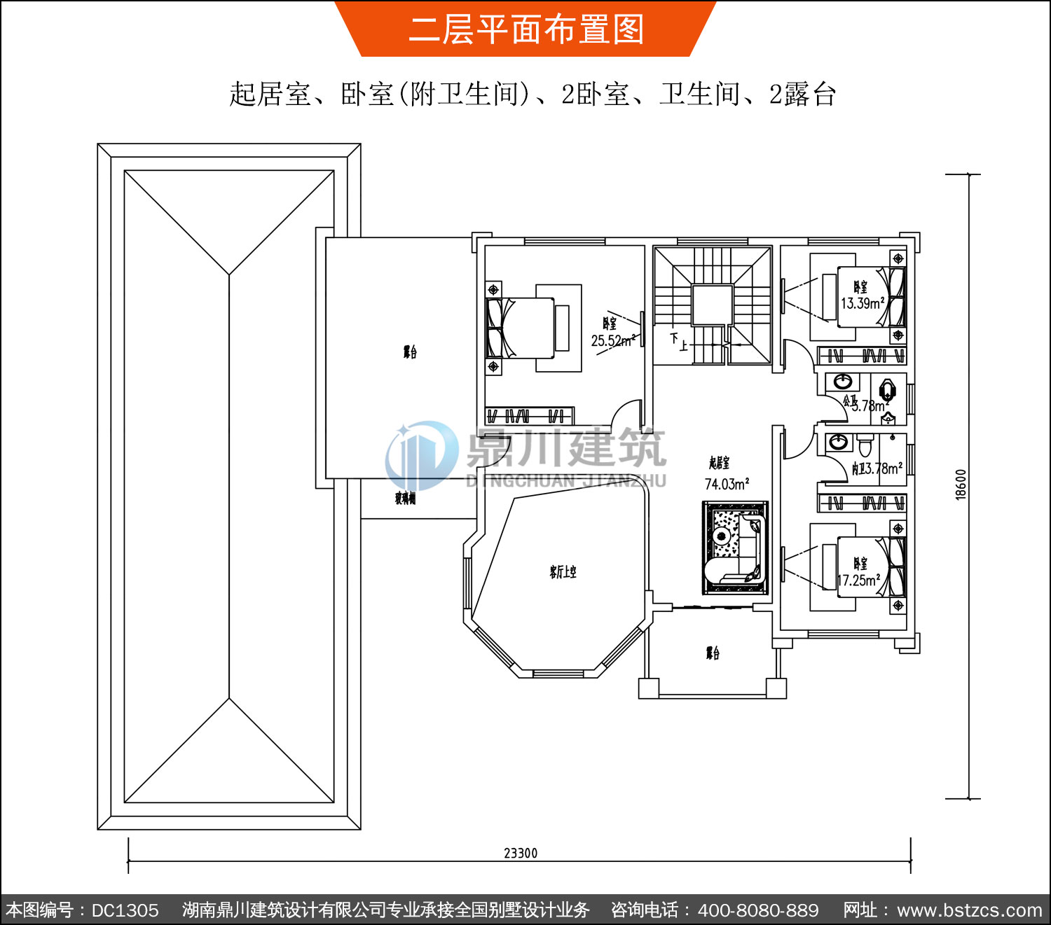 | 二 層: | 起居室、臥室(附衛(wèi)生間)、2臥室、衛(wèi)生間、2露臺(tái) | |||