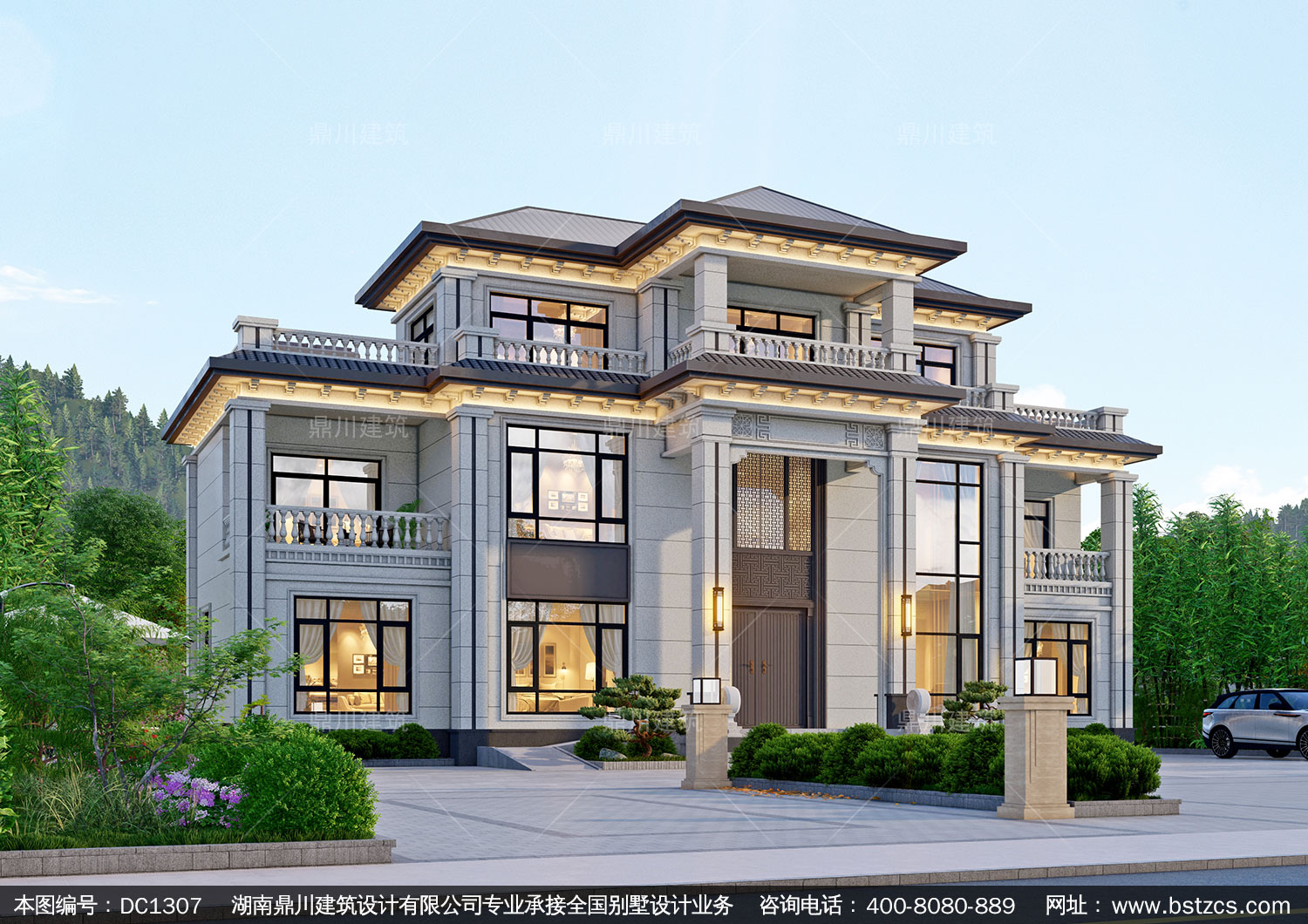 大氣新中式三層別墅施工圖紙及效果圖_農村自建別墅設計,鼎川建