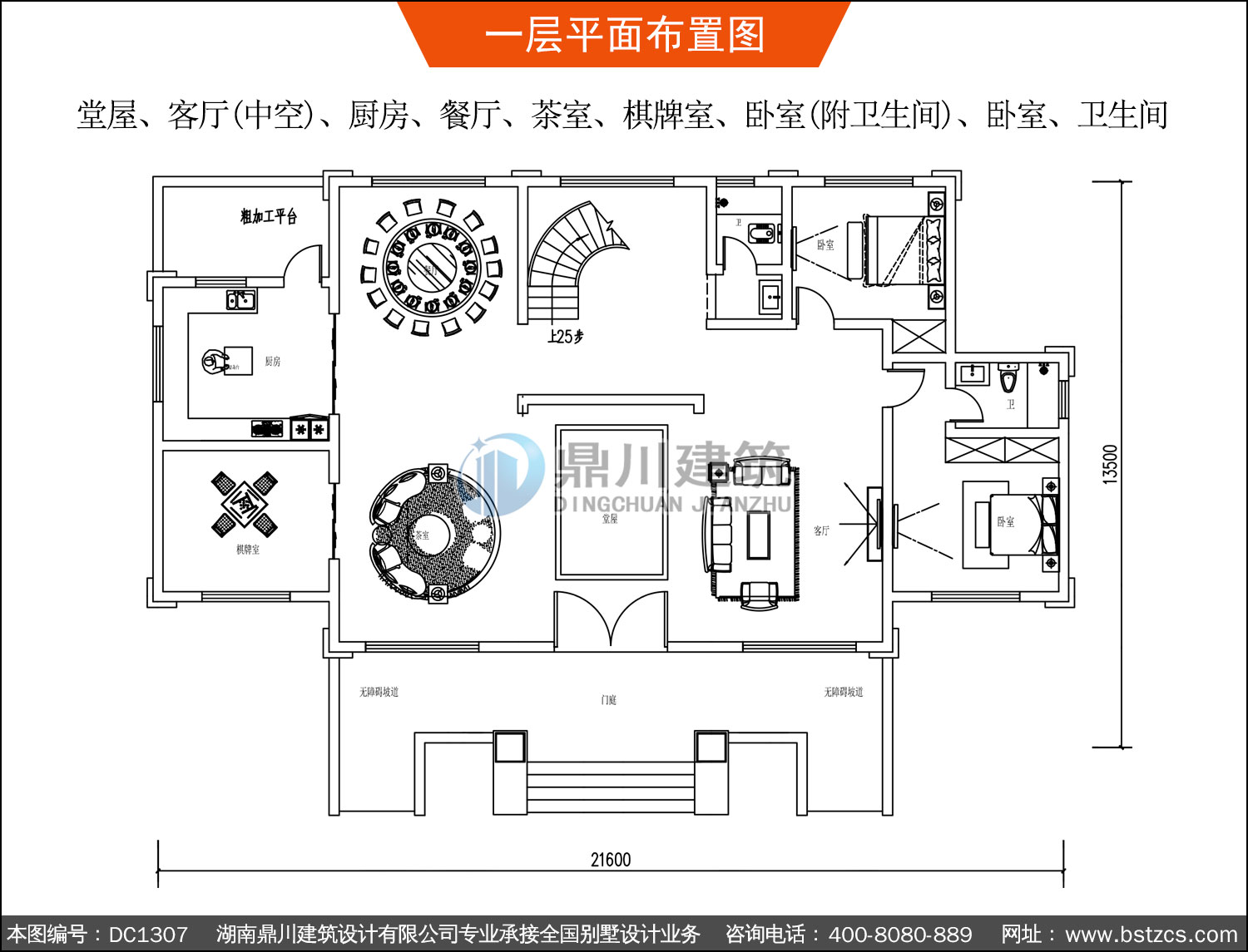 | 一 層: | 堂屋、客廳(中空)、廚房、餐廳、茶室、棋牌室、臥室(附衛生間)、臥室、衛生間 | |||