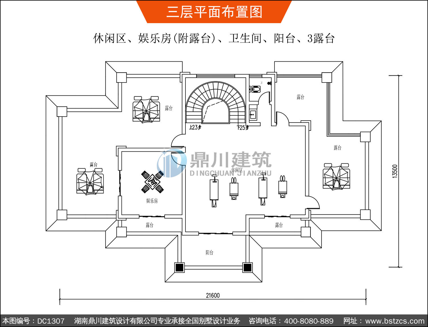 | 三 層: | 休閑區、娛樂房(附露臺)、衛生間、陽臺、3露臺 | |||