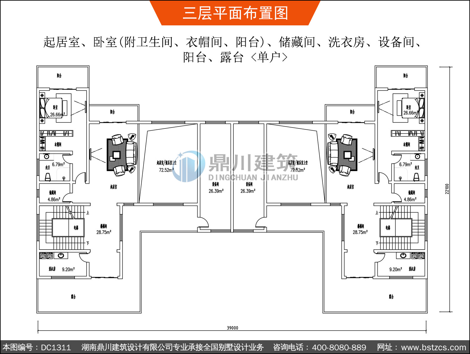 新中式三層兄弟雙拼別墅施工圖紙及效果圖_農村自建別墅設計,鼎