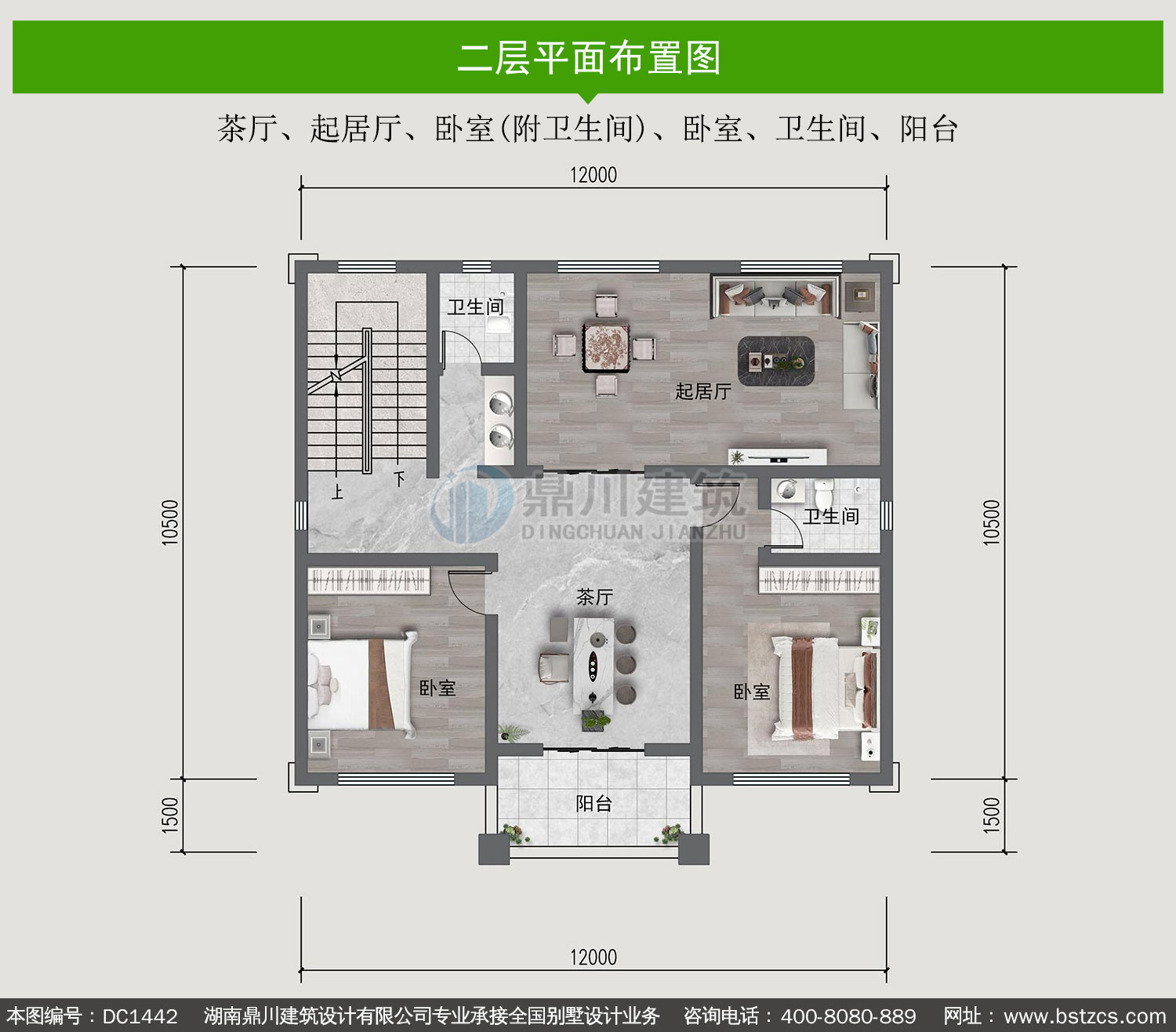 | 二 層: | 茶廳、起居廳、臥室(附衛(wèi)生間)、臥室、衛(wèi)生間、陽臺(tái) | |||