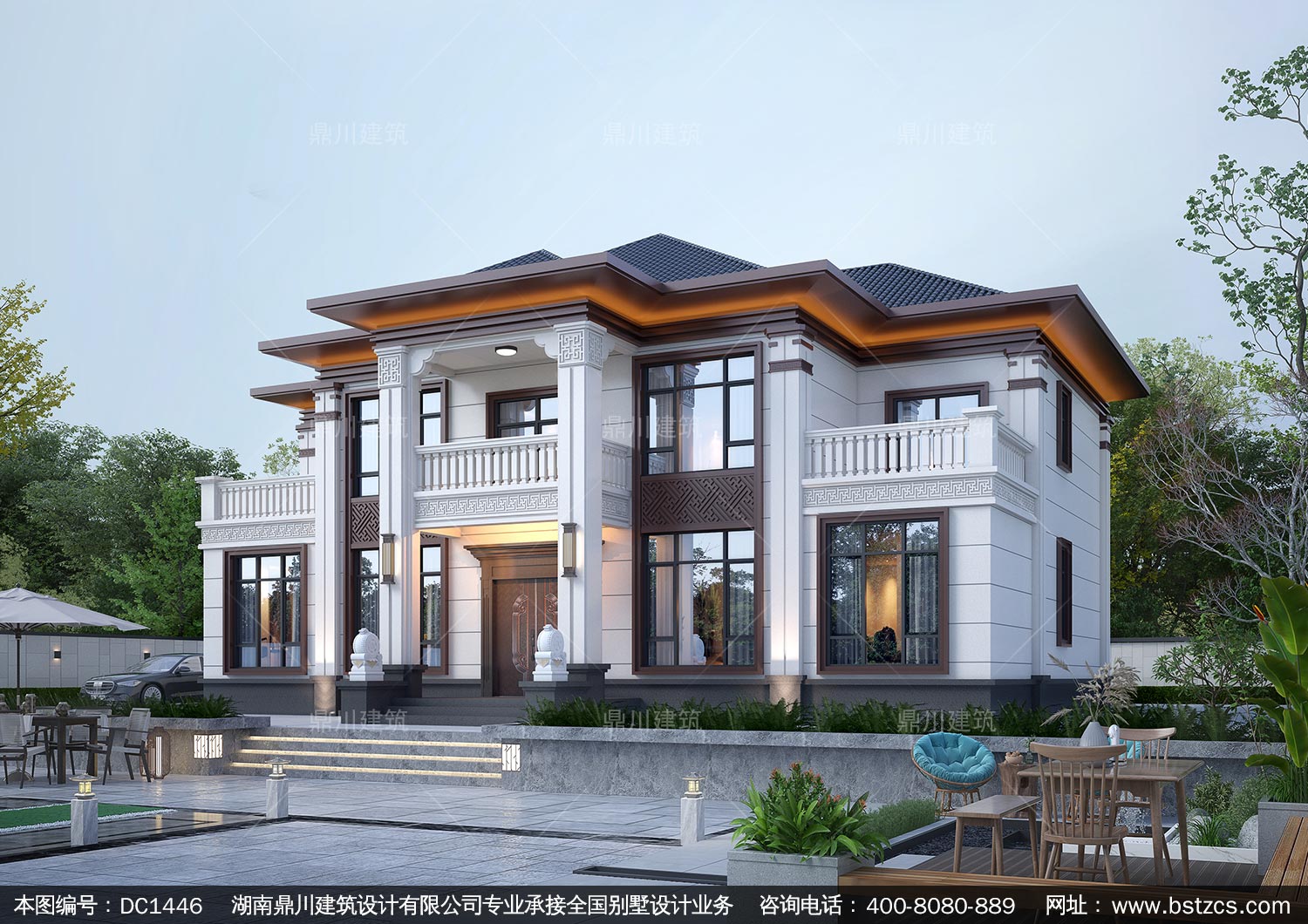 大氣新中式二層別墅設計圖紙及效果圖_農村自建房設計,鼎川建筑