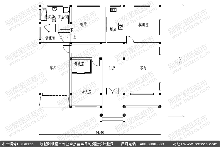 | 一 層: | 門廳、客廳、老人房(附儲(chǔ)藏室)、棋牌室、廚房、餐廳、儲(chǔ)藏室、衛(wèi)生間、車庫(kù) | |||
