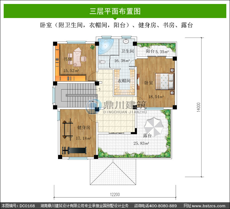 | 三 層: | 臥室(附衛(wèi)生間,衣帽間,陽臺)、健身房、書房、露臺 | |||