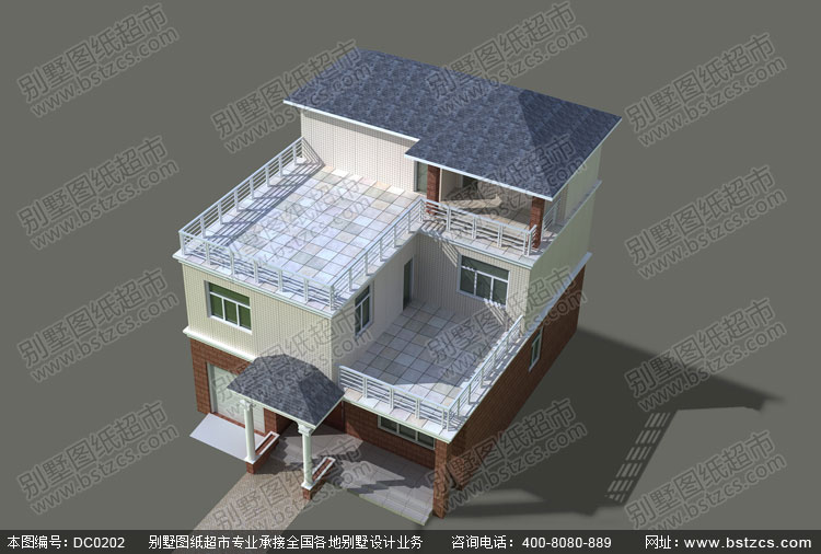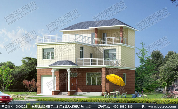 三層帶車庫及露臺別墅圖紙附效果圖_別墅設(shè)計圖紙,農(nóng)村房屋設(shè)計圖