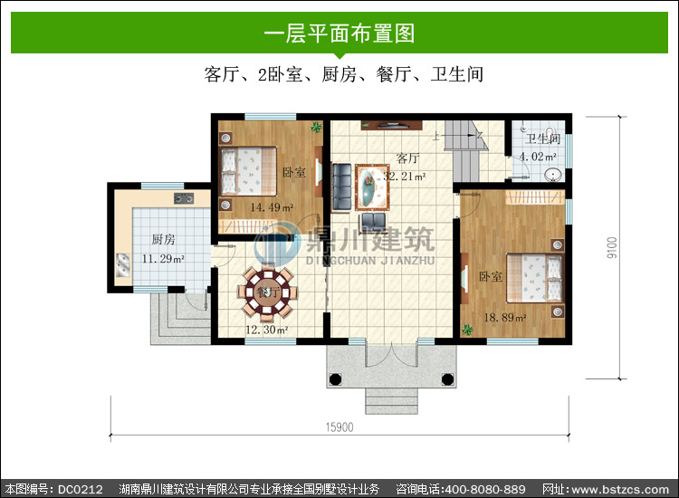| 一 層: | 客廳、2臥室、廚房、餐廳、衛(wèi)生間 | |||