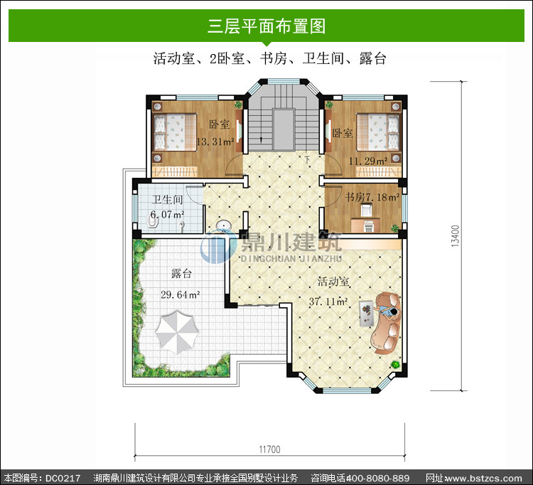 | 三 層: | 活動室、2臥室、書房、衛生間、露臺 | |||