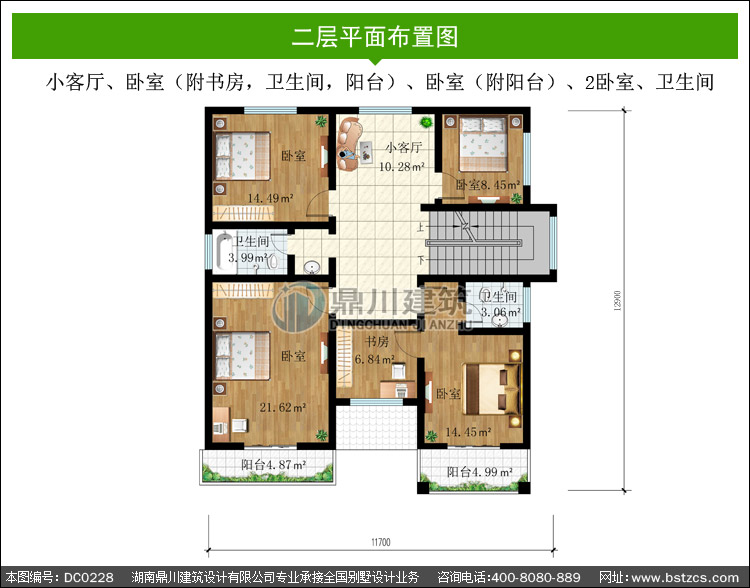 | 二 層: | 小客廳、臥室(附書房,衛生間,陽臺)、臥室(附陽臺)、2臥室、衛生間 | |||