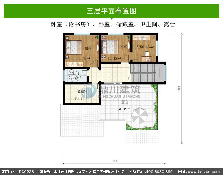 | 三 層: | 臥室(附書房)、臥室、儲藏室、衛生間、露臺 | |||