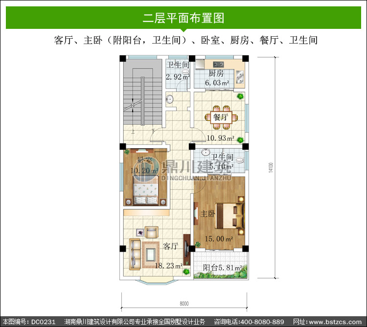 | 二 層: | 客廳、主臥(附陽臺(tái),衛(wèi)生間)、臥室、廚房、餐廳、衛(wèi)生間 | |||