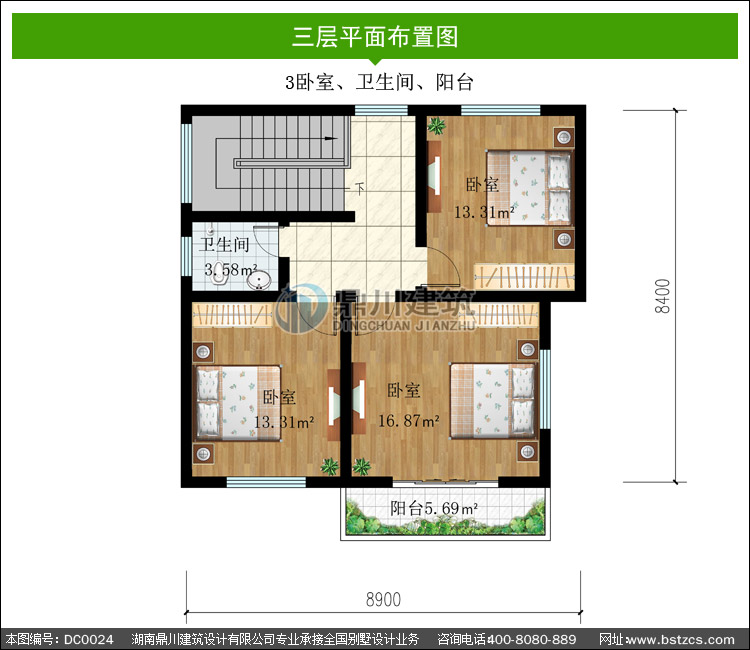 | 開間: 8.9米 | 進深: 8.4米 | 占地面積: 75.61平方米 | 建筑面積: 252.39平方米 |