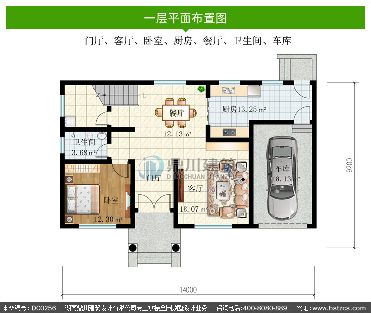 | 一 層: | 門廳、客廳、臥室、廚房、餐廳、衛生間、車庫 | |||