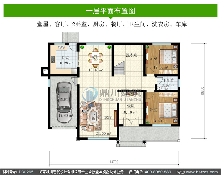 | 一 層: | 堂屋、客廳、2臥室、廚房、餐廳、衛(wèi)生間、洗衣房、車庫 | |||