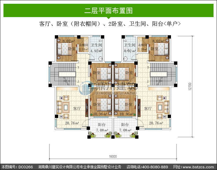 | 二 層: | 客廳、臥室(附衣帽間)、2臥室、衛(wèi)生間、陽臺 | |||