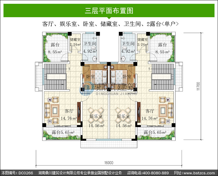 | 三 層: | 客廳、娛樂室、臥室、儲藏室、衛(wèi)生間、2露臺 | |||
