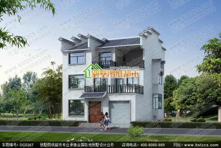 三層帶車庫徽派自建房設計圖紙_別墅圖紙超市,農村房屋設計圖