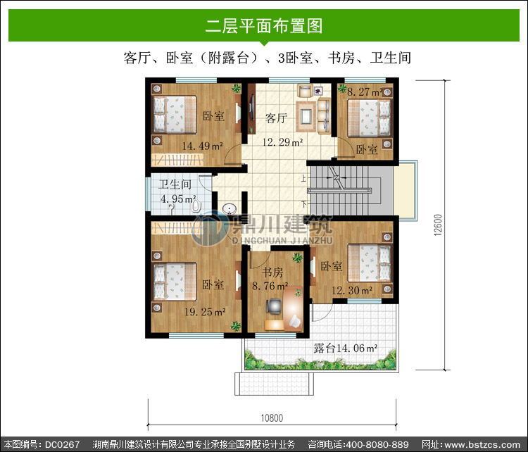 | 二 層: | 客廳、臥室(附露臺)、3臥室、書房、衛生間 | |||