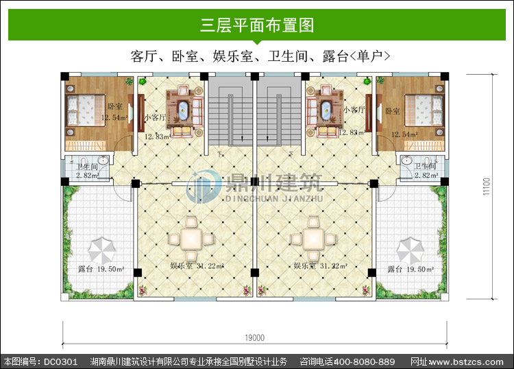 豪華三層復式雙拼別墅圖紙及效果圖_雙拼別墅設計圖紙,鼎川建筑