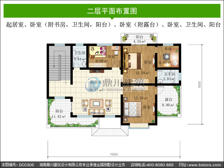 新農村二層帶大露臺別墅設計圖_農村房屋設計圖,鼎川建筑圖紙