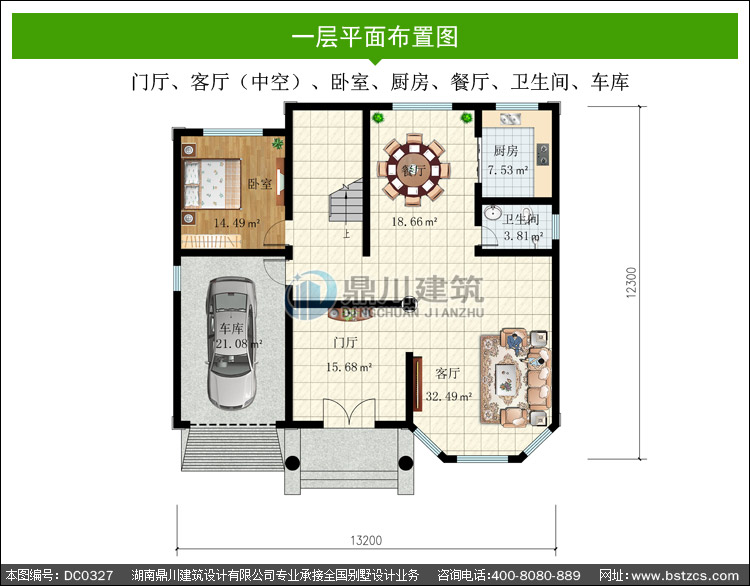 | 一 層: | 門廳、客廳(中空)、臥室、廚房、餐廳、衛(wèi)生間、車庫 | |||