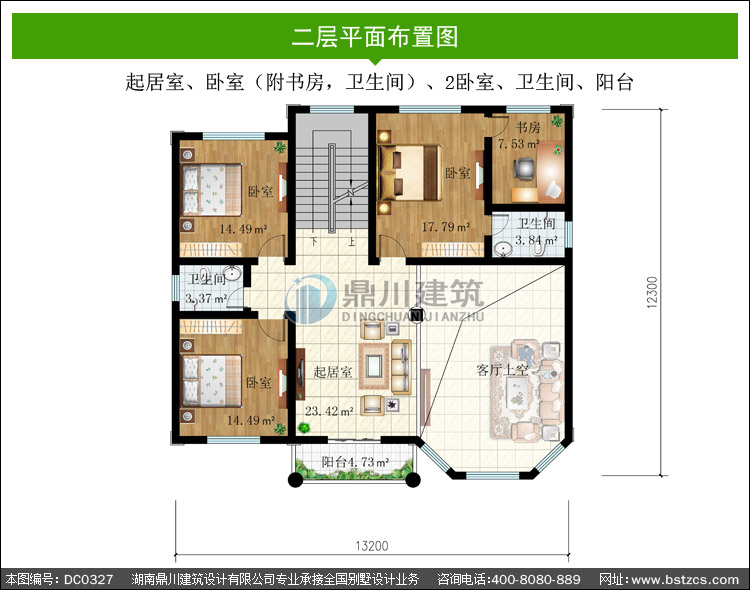 | 二 層: | 起居室、臥室(附書房,衛(wèi)生間)、2臥室、衛(wèi)生間、陽臺 | |||