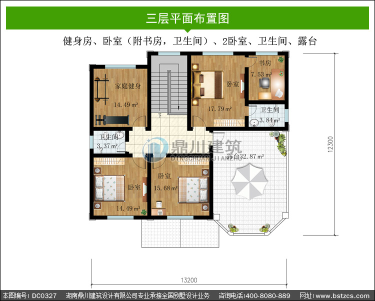 | 三 層: | 健身房、臥室(附書房,衛(wèi)生間)、2臥室、衛(wèi)生間、露臺 | |||