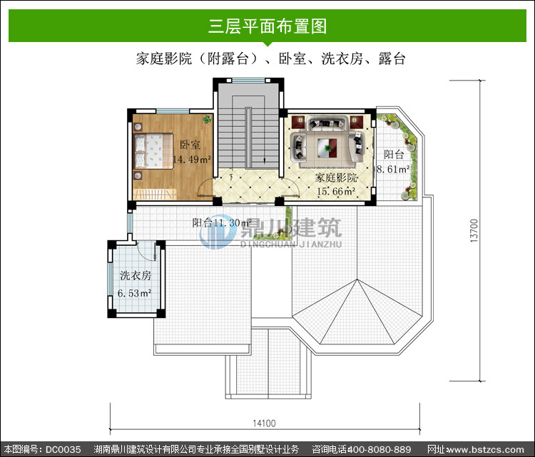| 三 層: | 家庭影院(附露臺)、臥室、洗衣房、露臺 | |||