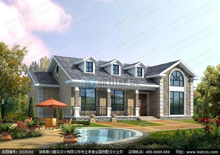 | 編號: DC0350 | 層數: 一層帶閣樓 | 結構形式: 磚混結構 | 主體造價: 22-30萬 |