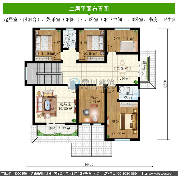 | 二 層: | 起居室(附陽臺)、娛樂室(附陽臺)、臥室(附衛生間)、3臥室、書房、衛生間 | |||