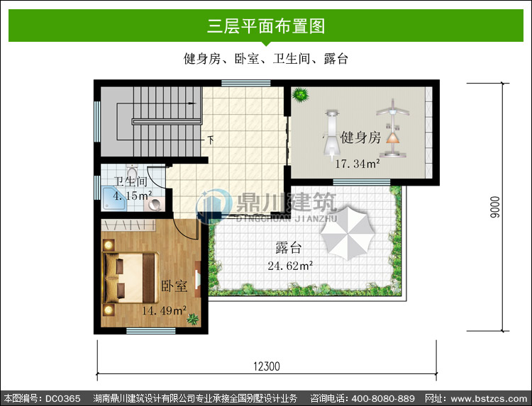 | 三 層: | 健身房、臥室、衛(wèi)生間、露臺 | |||