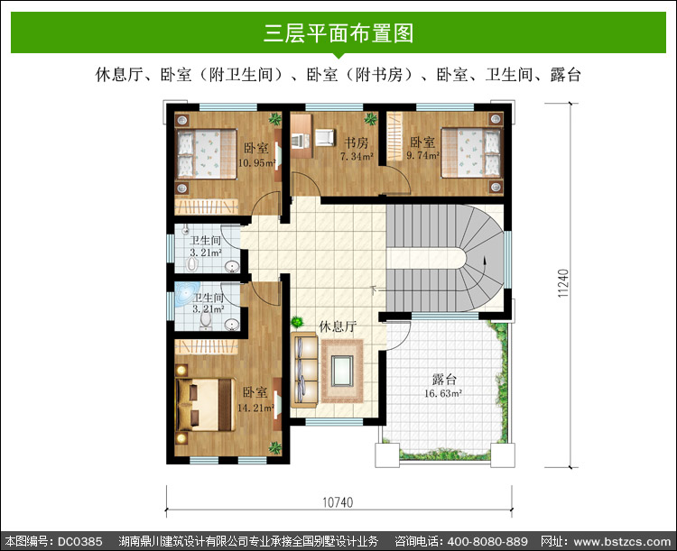 | 三 層: | 休息廳、臥室(附衛(wèi)生間)、臥室(附書(shū)房)、臥室、衛(wèi)生間、露臺(tái) | |||