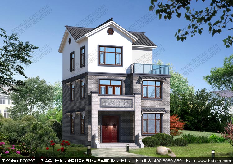 三層帶露臺中式小戶型別墅設計圖紙_農村三層別墅圖紙,鼎川建筑