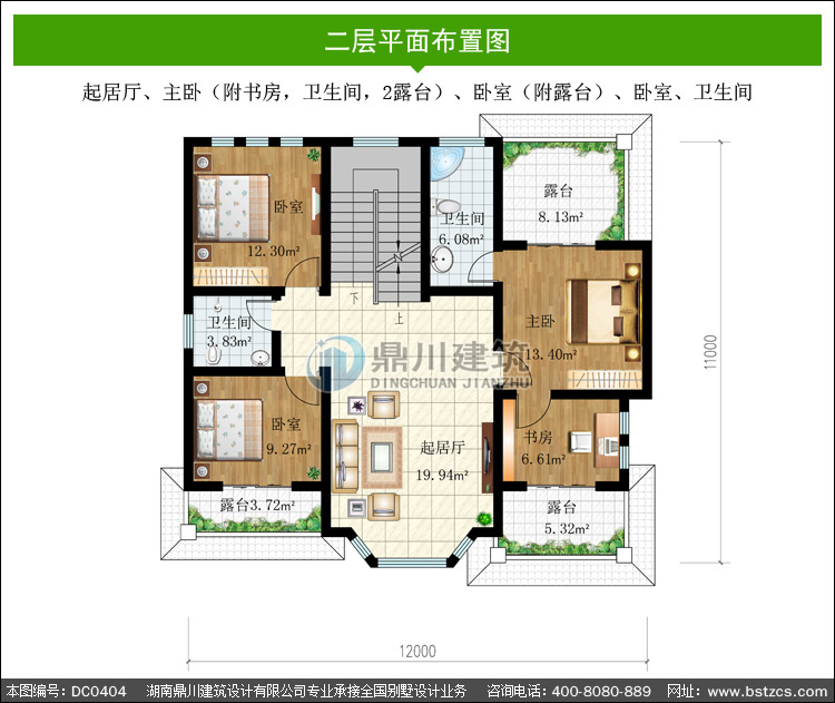 | 二 層: | 起居廳、主臥(附書房,衛生間,2露臺)、臥室(附露臺)、臥室、衛生間 | |||