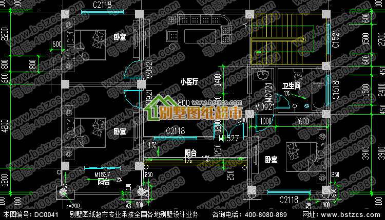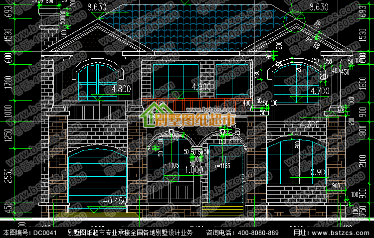 二層帶走廊別墅設計施工圖及效果圖_別墅圖紙超市,鼎川建筑