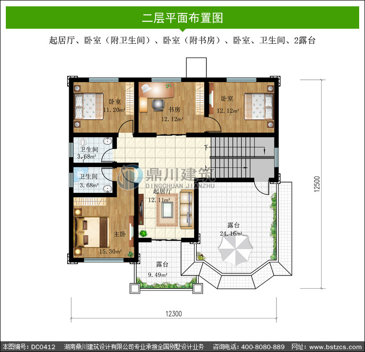 二層帶露臺農村小別墅施工圖及效果圖_別墅圖片大全,鼎川圖紙超
