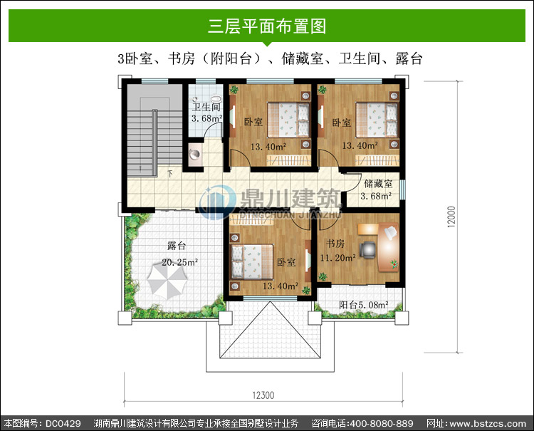 | 三 層: | 3臥室、書房(附陽臺)、儲藏室、衛生間、露臺 | |||