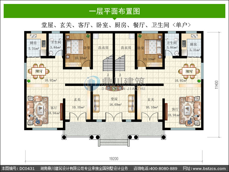 歐式三層帶堂屋雙拼別墅設計圖紙_農村三層雙拼別墅設計,鼎川建筑