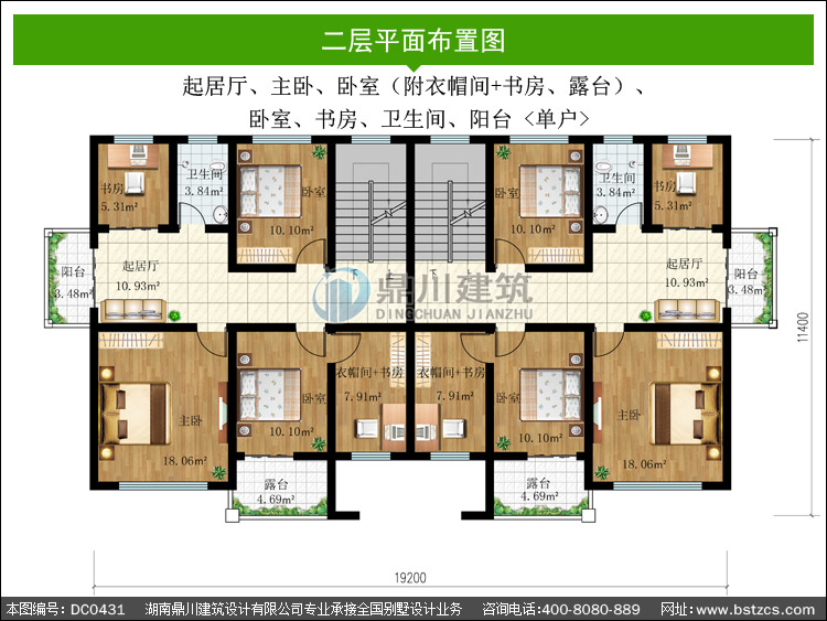 | 二 層: | 起居廳、主臥、臥室(附衣帽間+書房、露臺)、臥室、書 房、衛生間、陽臺 | |||