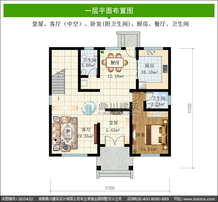 | 一 層: | 堂屋、客廳(中空)、臥室(附衛生間)、廚房、餐廳、衛生間 | |||