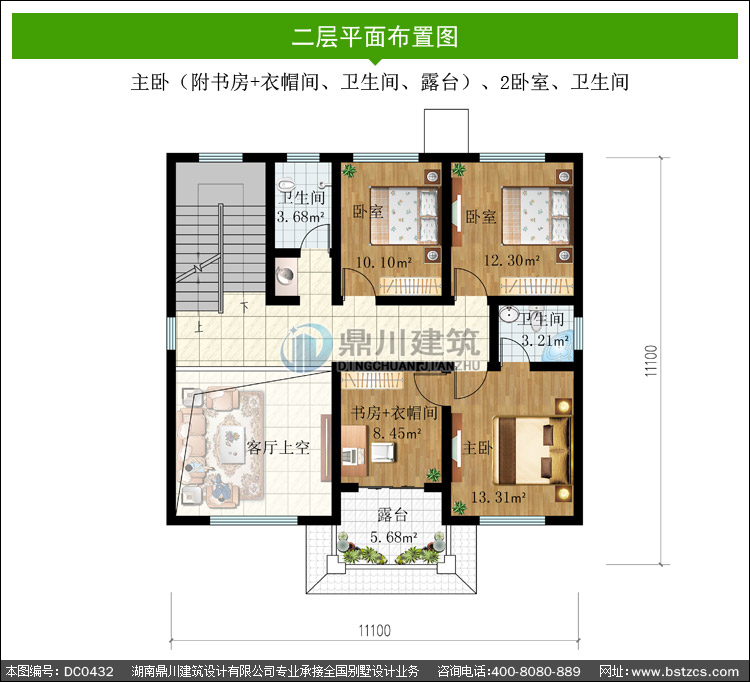 | 二 層: | 主臥(附書房+衣帽間、衛生間、露臺)、2臥室、衛生間 | |||
