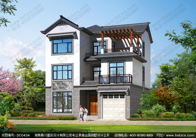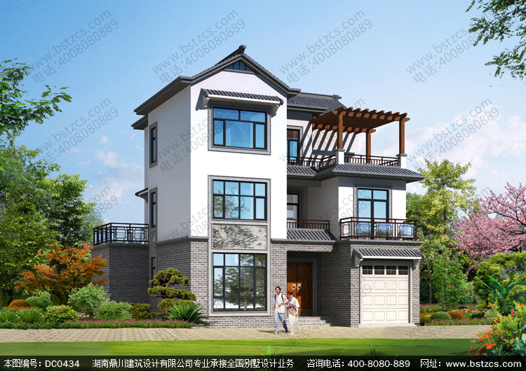 二層半帶車庫中式小別墅全套圖紙及效果圖_三層中式房屋設計,鼎