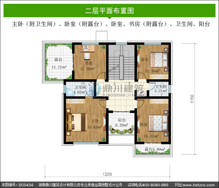 | 二 層: | 主臥(附衛生間)、臥室(附露臺)、臥室、書房(附露臺 )、衛生間、陽臺 | |||