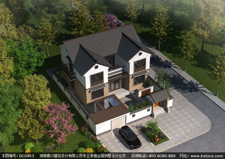農村二層帶院子中式房屋設計圖紙及效果圖_農村兩層別墅圖紙,鼎