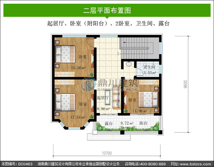 | 二 層: | 起居廳、臥室(附陽臺(tái))、2臥室、衛(wèi)生間、露臺(tái) | |||