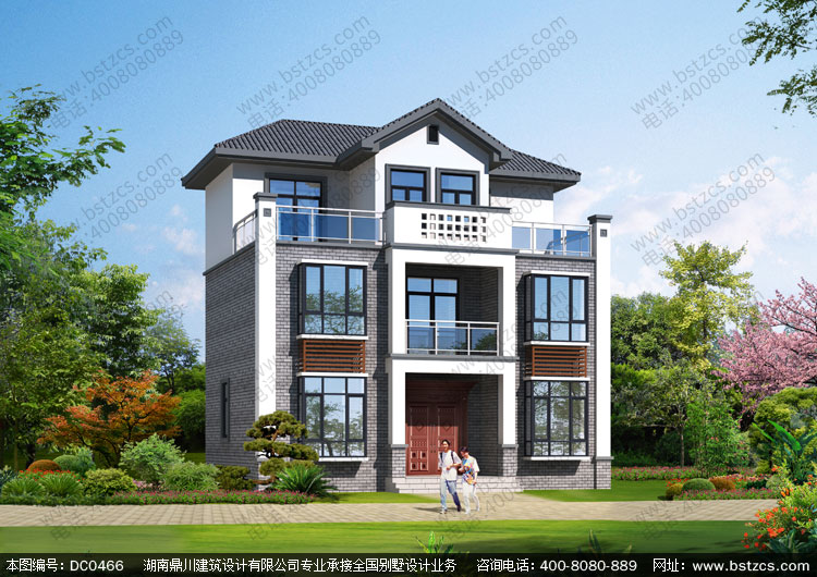 新中式三層帶露臺小別墅設計圖紙及效果圖_農村三層別墅設計,鼎