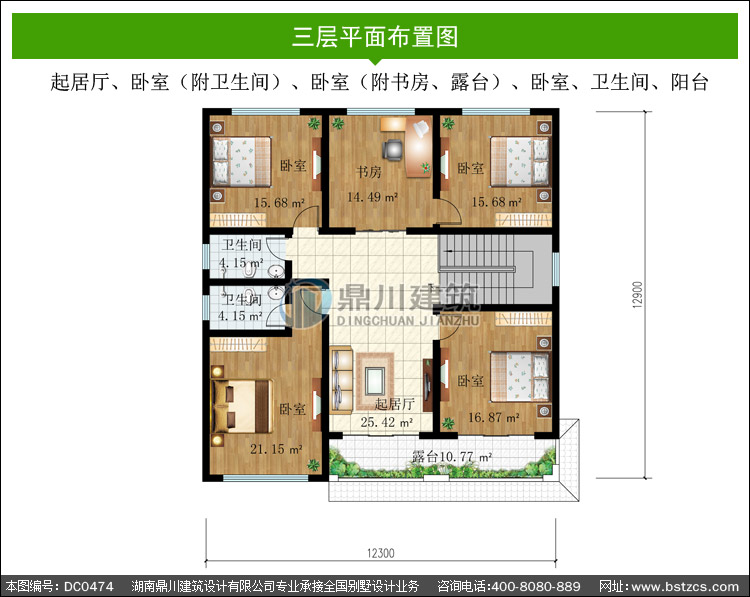 三層帶露臺自建房小別墅設計圖紙_農村三層別墅設計,鼎川建筑