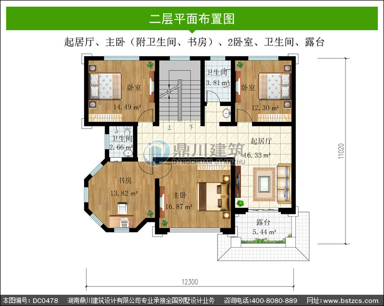 | 二 層: | 起居廳、主臥(附衛(wèi)生間、書房)、2臥室、衛(wèi)生間、露臺 | |||