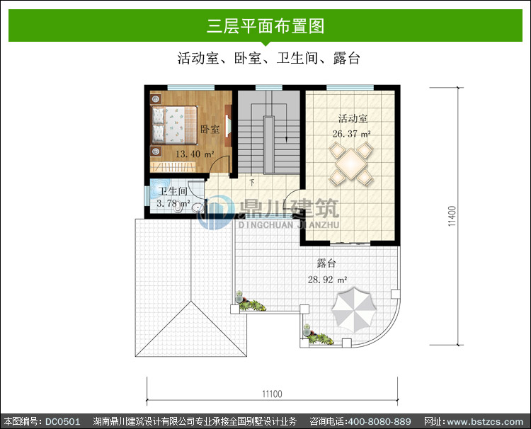 | 三 層: | 活動室、臥室、衛生間、露臺 | |||